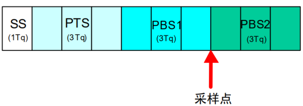 如同步段(SS)、传播时间段(PTS)、相位缓冲段1(PBS1)、相位缓冲段2(PBS2);